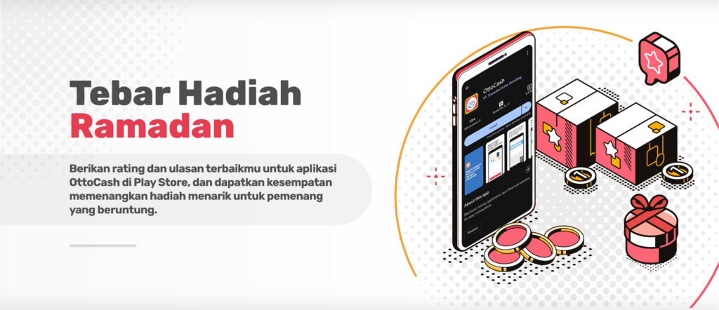 Sekarang saatnya kamu berbagi pengalaman menggunakan aplikasi OttoCash dan berkesempatan mendapatkan hadiah total Rp1.000.000 untuk pemenang yang beruntung. Cukup berikan rating dan review jujur kamu di Google Play Store, dan kamu bisa terpilih sebagai pemenangnya.